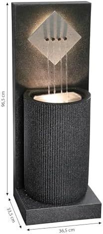 Wysoka fontanna z polietylenu odporna na mróz. Komplet z pompą i LEDami. Woda spływa ze ściany do naczynia. Relaksujący plusk na tarasie. Wytrzymała na słońce i deszcz. Nocne oświetlenie przykuwa wzrok. Użyj deszczówki dla czystości. Dodaj środek antyglonowy. Przechowuj pompę zimą w wodzie. Odkamieniaj regularnie dla dłuższej żywotności.