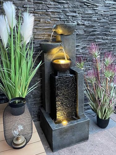 Duża ogrodowa atrakcja z diodami LED. Tworzy relaksujący wodospad na tarasie. Imitacja naturalnych skał. Łatwa instalacja z pompą. Podkreśla przestrzeń zieloną. Oświetlenie nocne dodaje magii. Wytrzymała konstrukcja żywiczna. Pasuje do nowoczesnych ogrodów. Zapewnia szum wody na co dzień. Idealna dekoracja letnia.