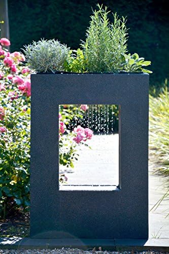 Elegancka prostokątna forma z miejscem na kwiaty wzbogaca otoczenie wewnątrz i na zewnątrz. Wyobraź sobie relaks przy szumie wody w słoneczne popołudnia na balkonie. Wszechstronna, pasuje do biura czy ogrodu zimowego. Zasilana standardową wtyczką, z długim kablem w komplecie. Energooszczędne oświetlenie LED rozświetla noc. Żywica poliestrowa imituje ciężki kamień, ale jest mobilna. Przechowuj zimą w cieple ze względu na elektronikę. Dodatek antykamienny przedłuża żywotność. Wymiary to ponad pół metra długości i wysokości. Waży około jedenaście kilogramów, łatwa w przenoszeniu.